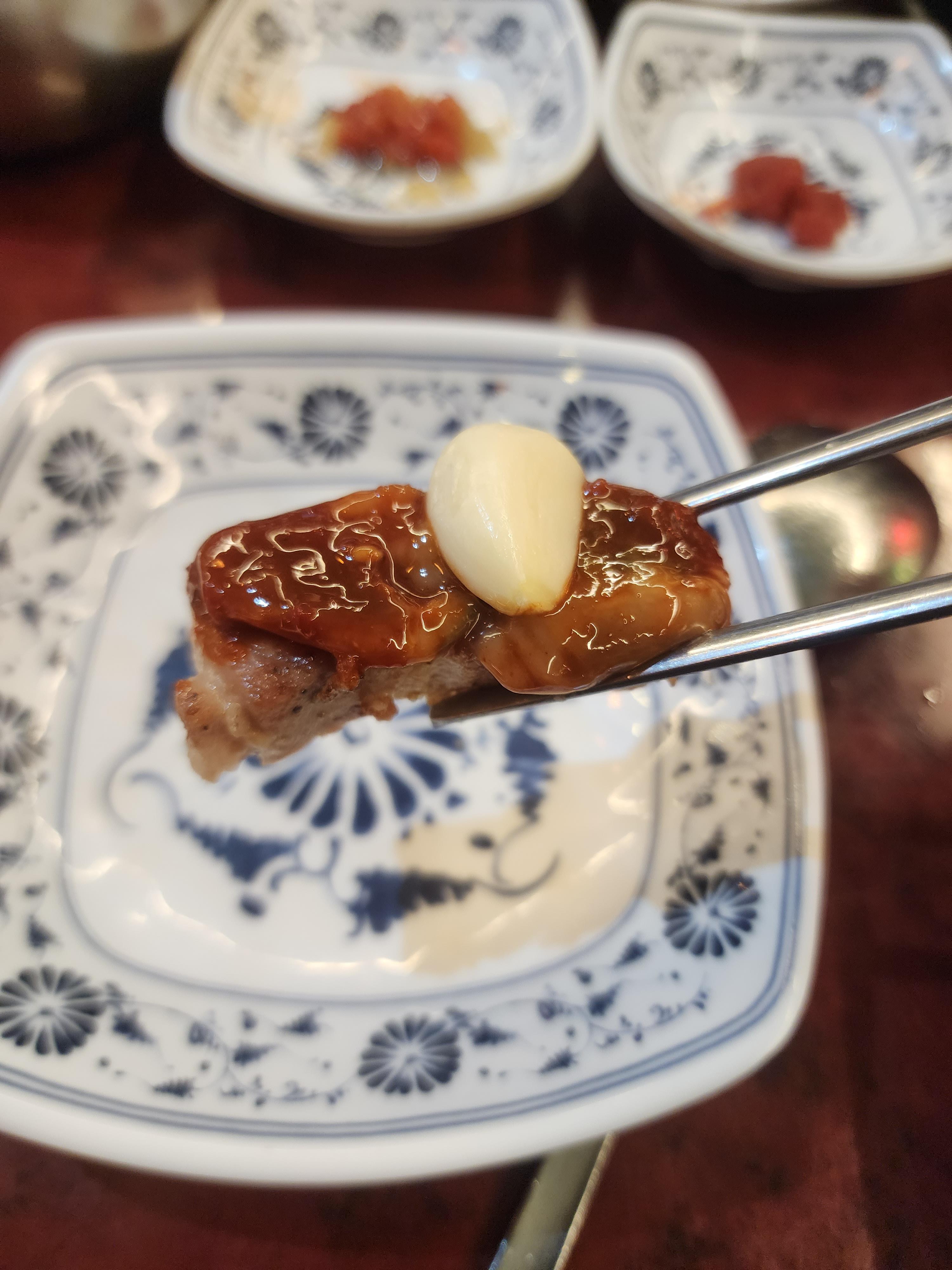 어리굴젓의 약간 비릿하고 짭짤한 맛이 고기와 은근히 어울리네요!!!