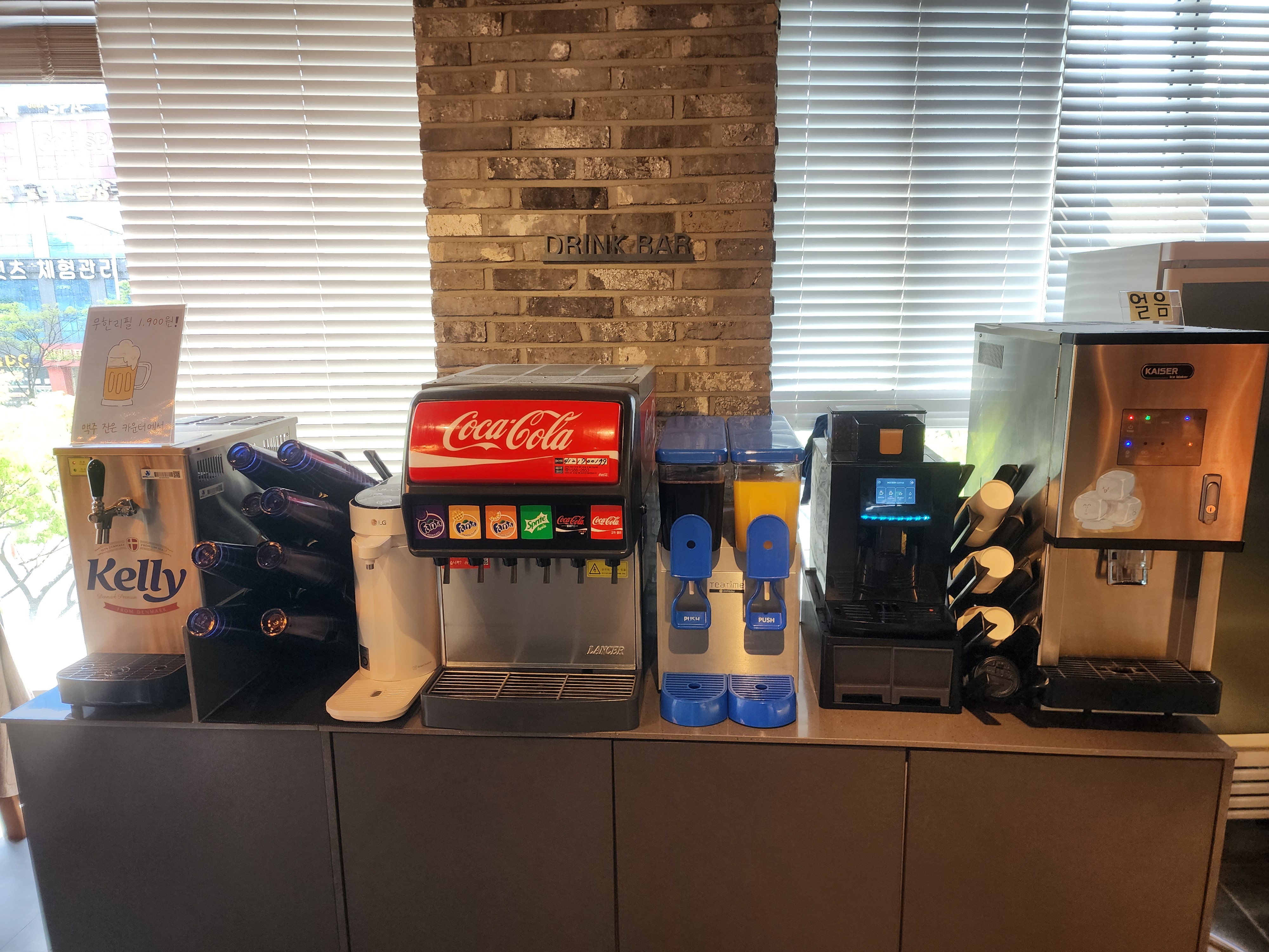 맥주는 결제 후 전용 잔에 받아서 마셔야 하지만 음료는 무한으로 마실 수 있어서 좋습니다.