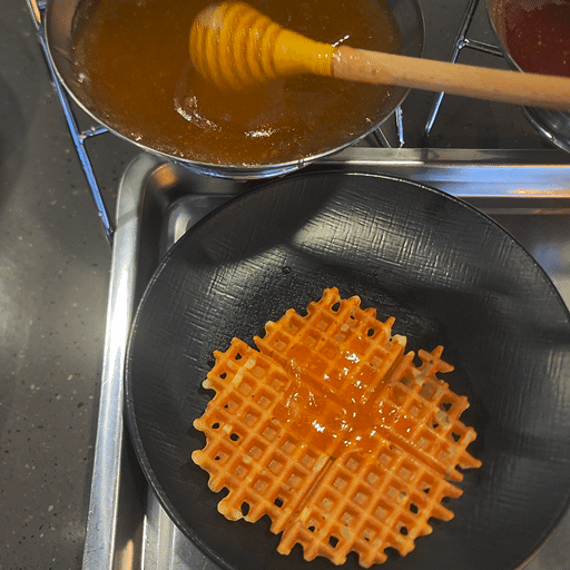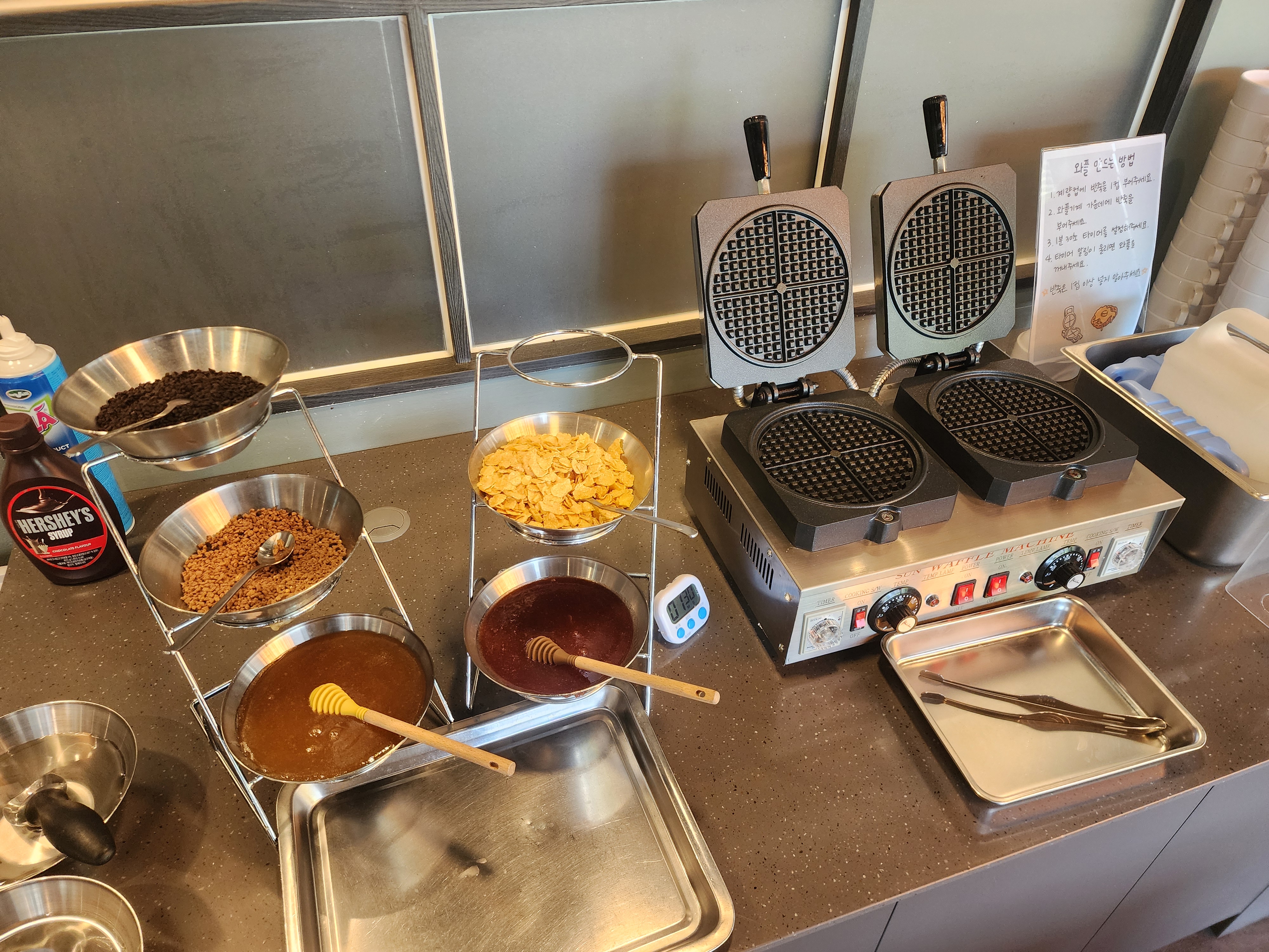 와플은 매뉴얼에 따라 야무지게 만들고 잼을 발라줬습니다.