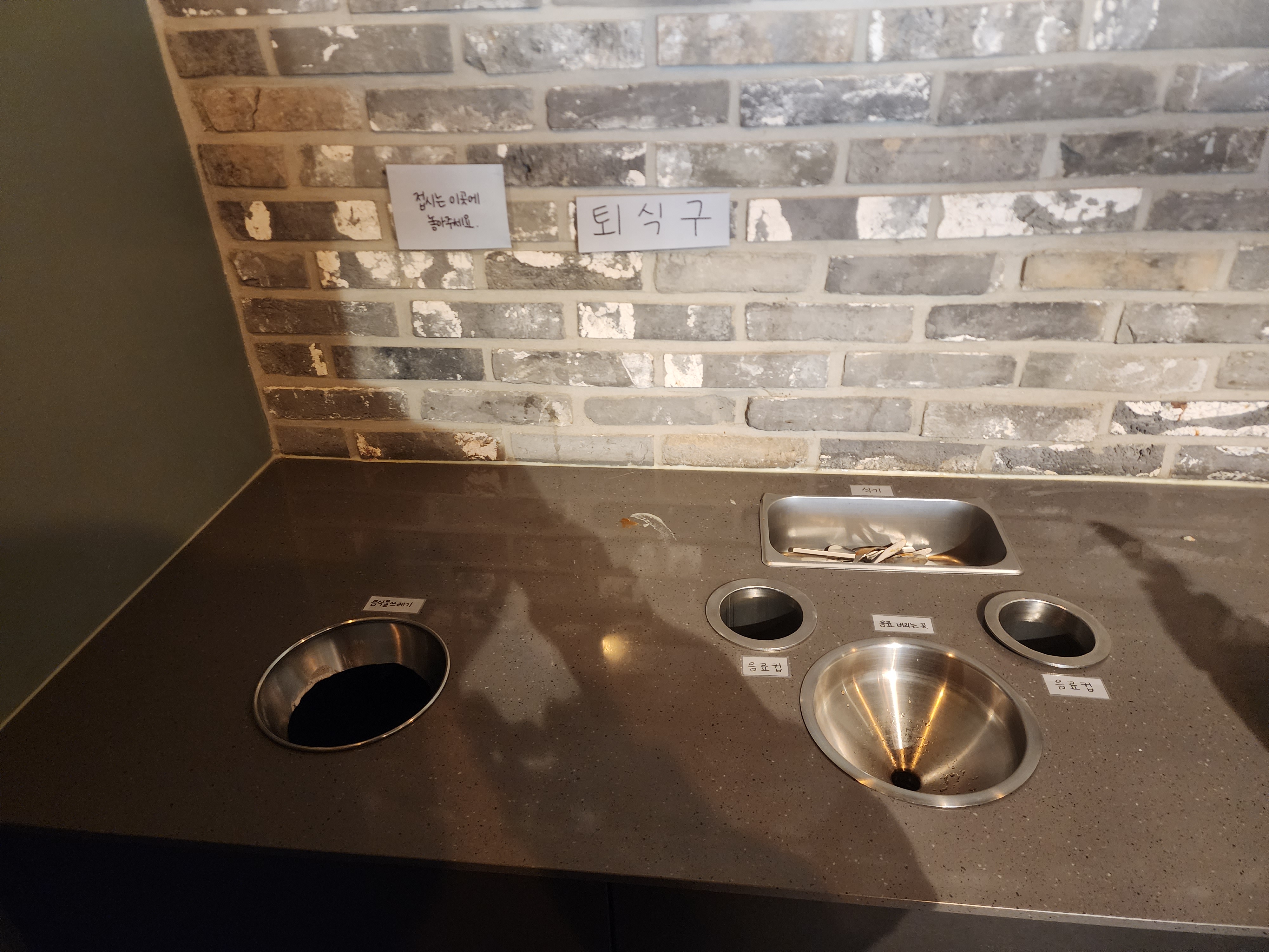 그리고 퇴식구로 남은 음식과 접시를 다 치워야 하는데 이것도 번거롭고 귀찮은 서비스였습니다.