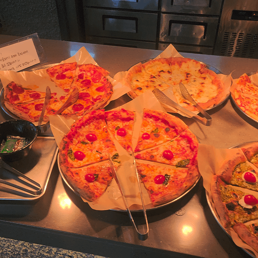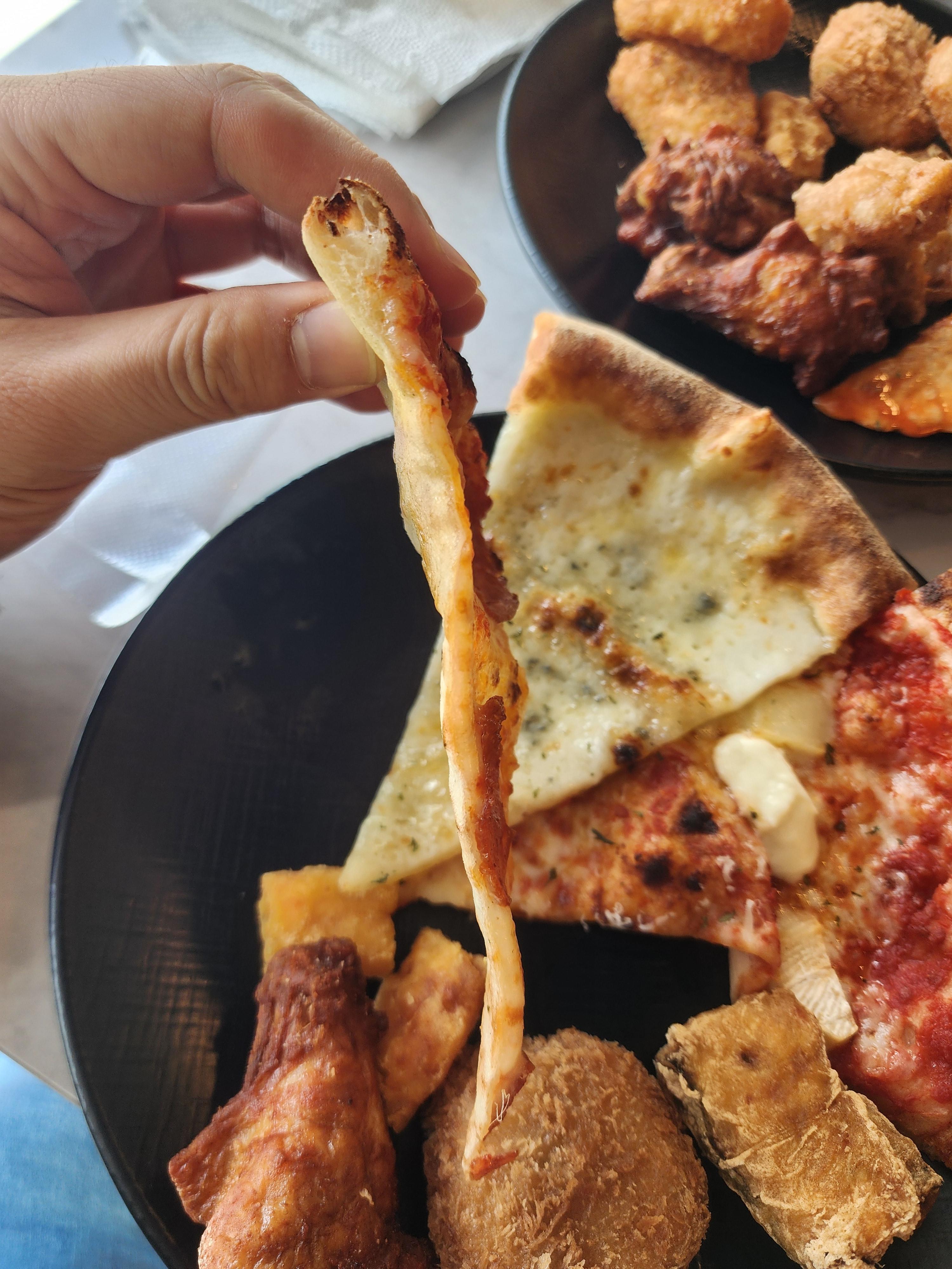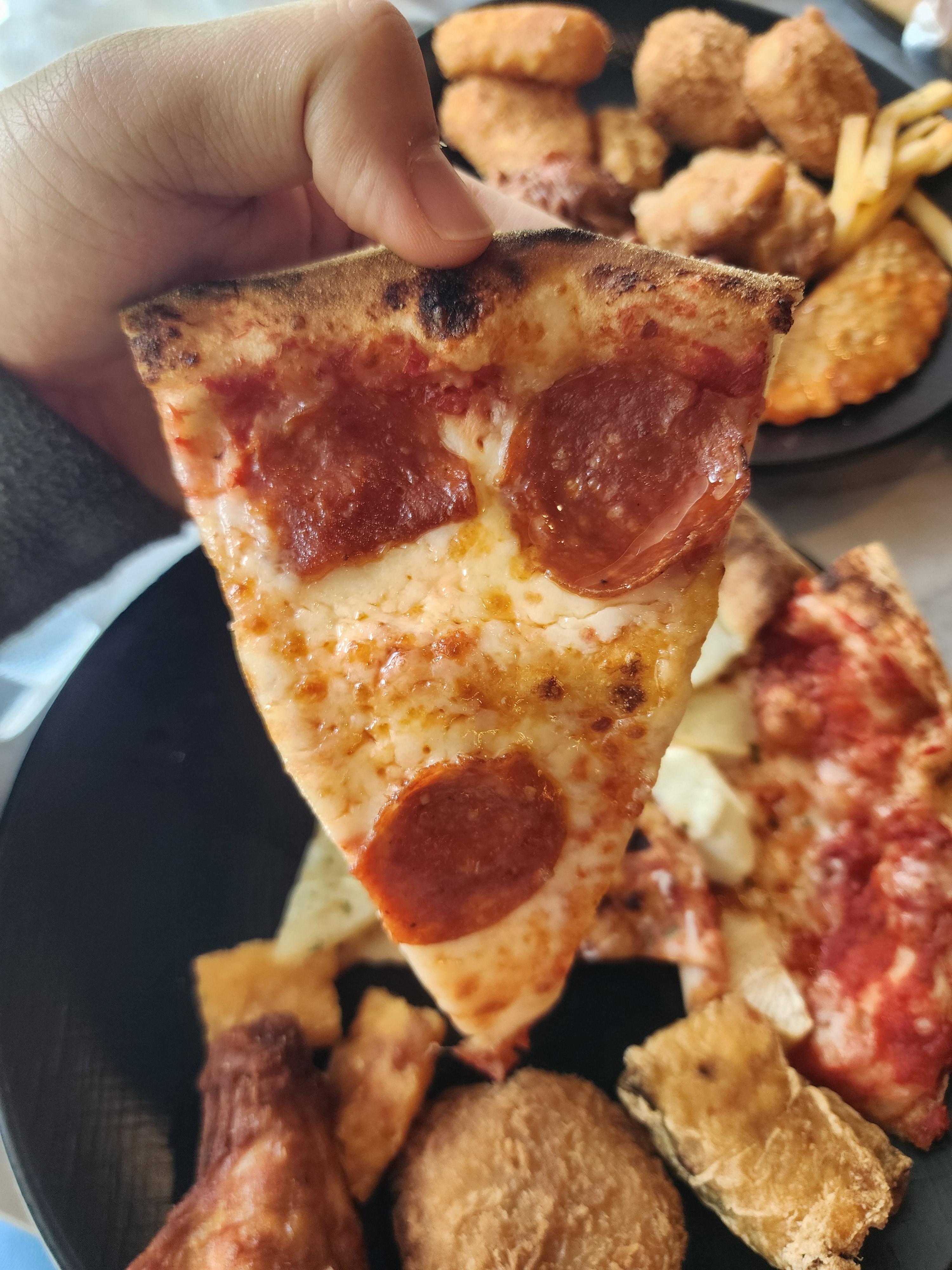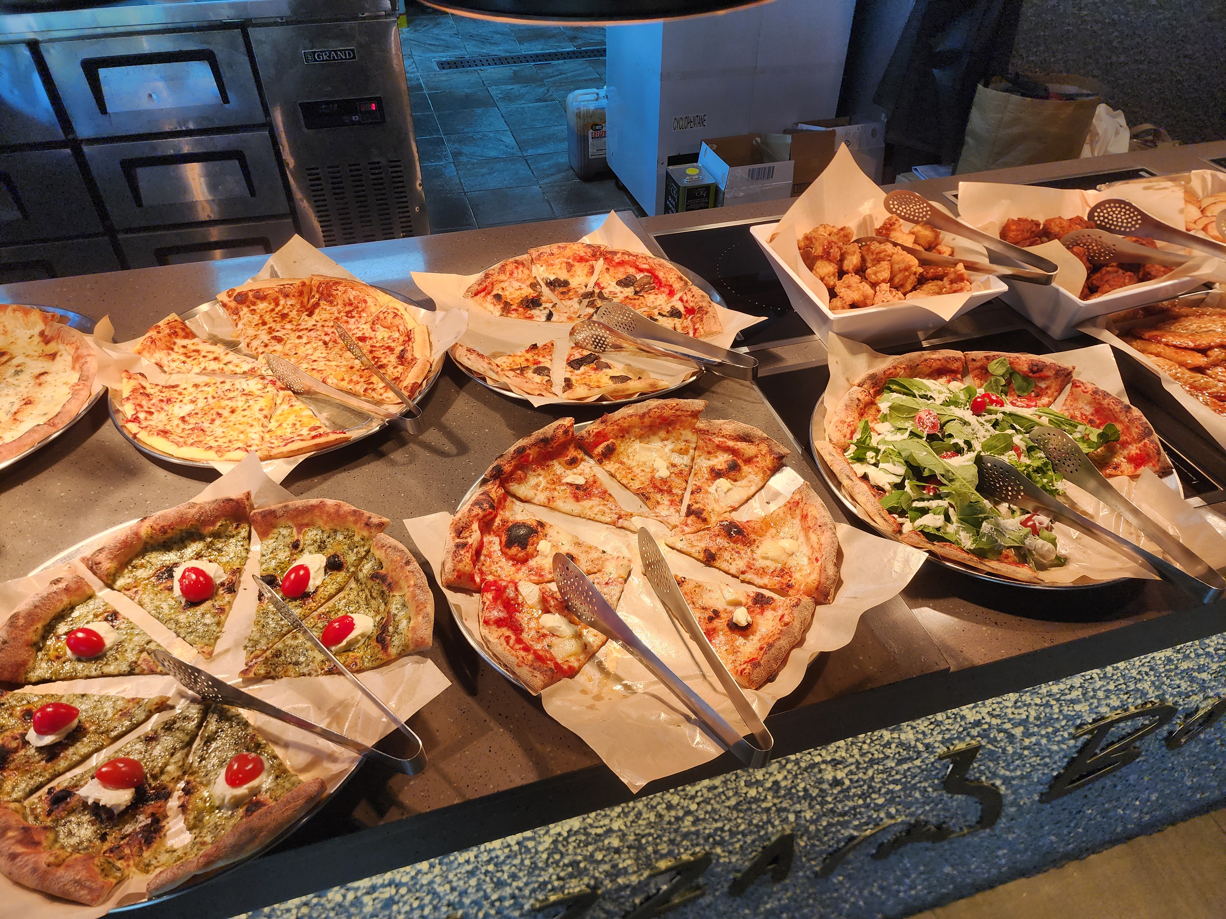 피자는 8가지 있었고 화덕으로 구웠는지 피자 꼬다리가 맛있어 보입니다.
