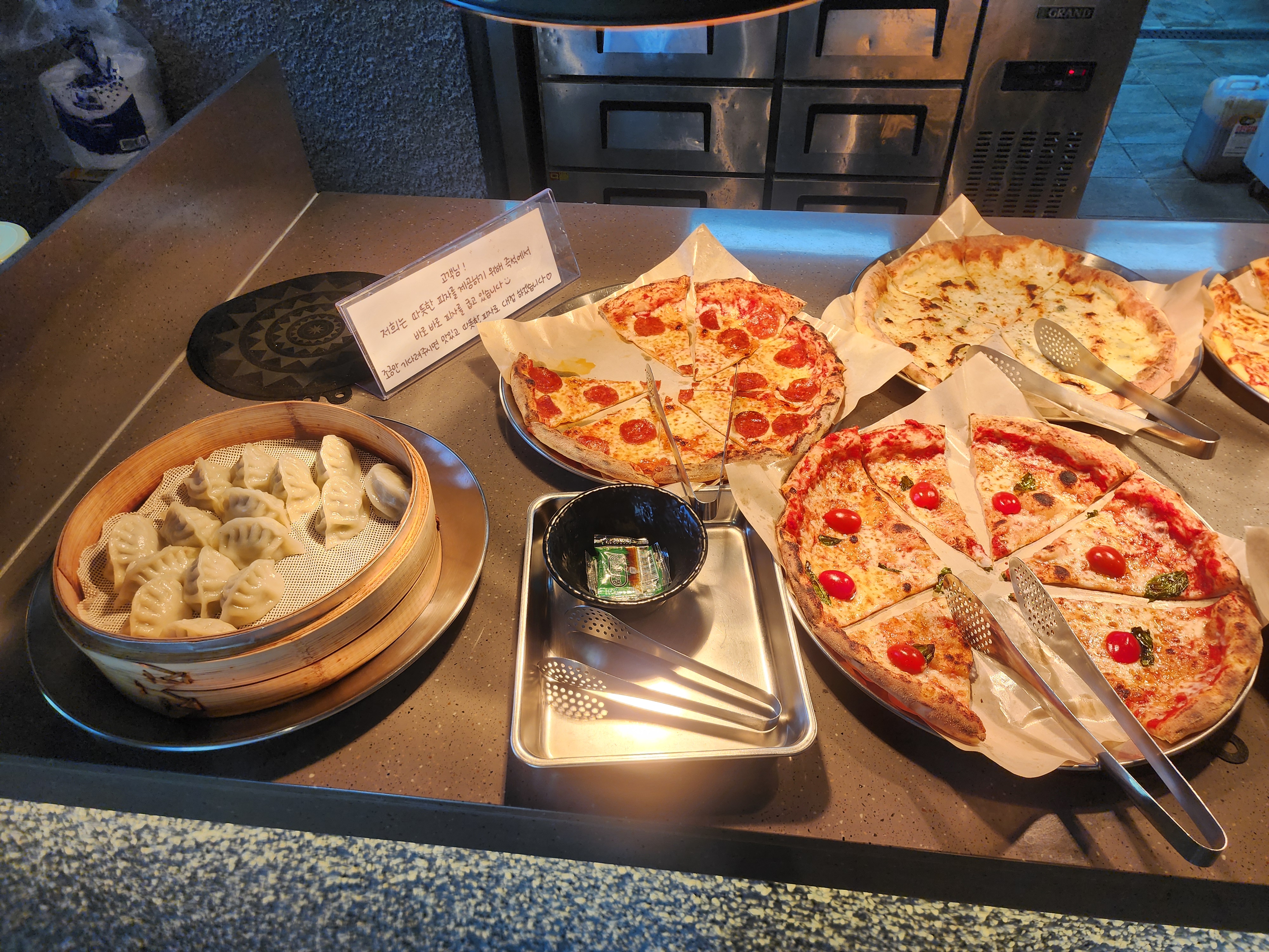 피자 외에도 사이드 음식도 무한으로 먹을 수 있다고 하는데요.