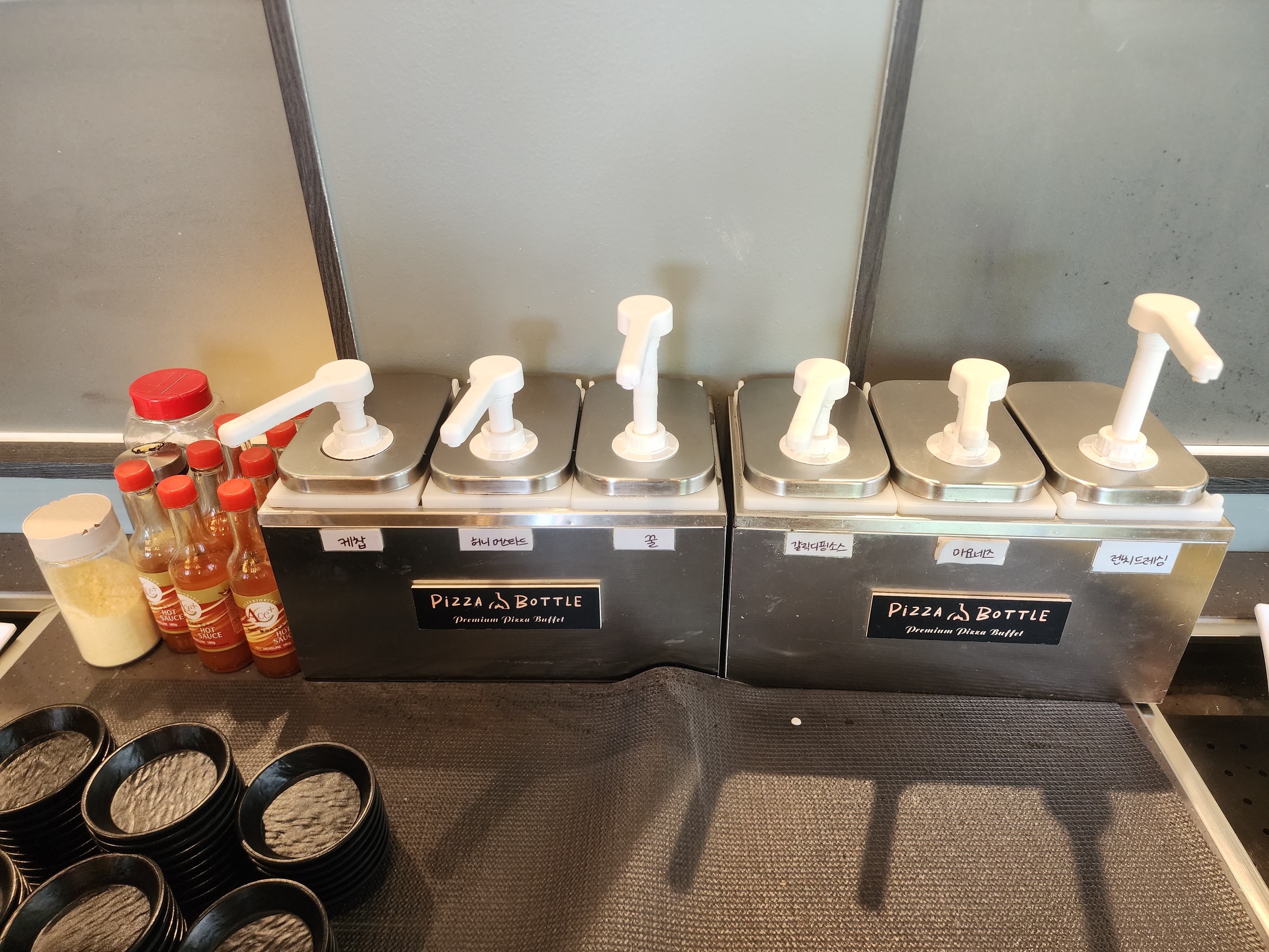 피자와 어울리는 여러 가지 소스도 구비돼 있습니다.