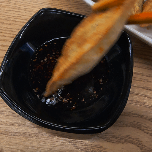 한 입 먹고 찍어야 잘 찍히는데 그래도 열심히 간장을 찍어줍니다.