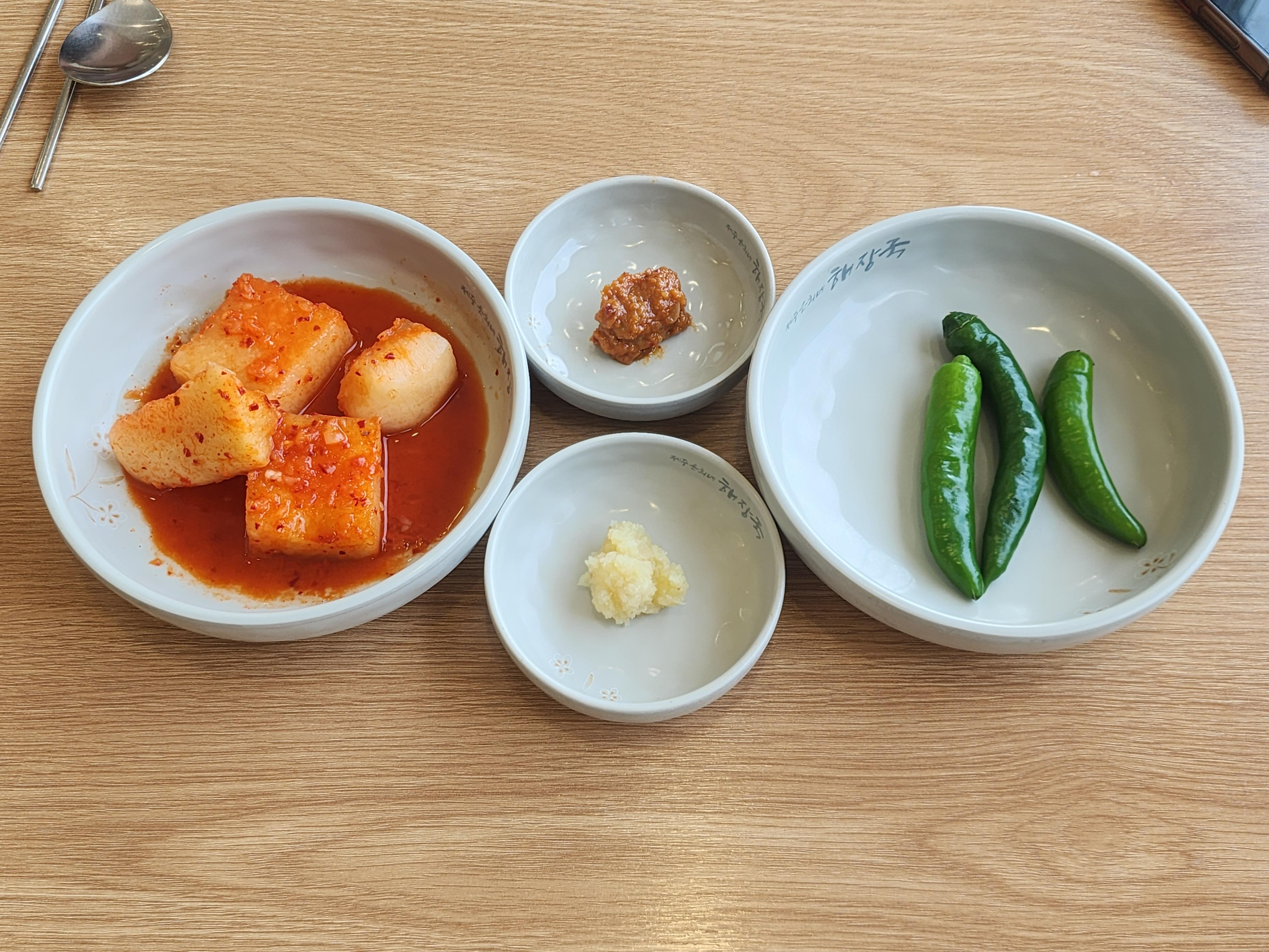 김치는 섞박지만 나오고 나머지는 청양고추만 있네요.