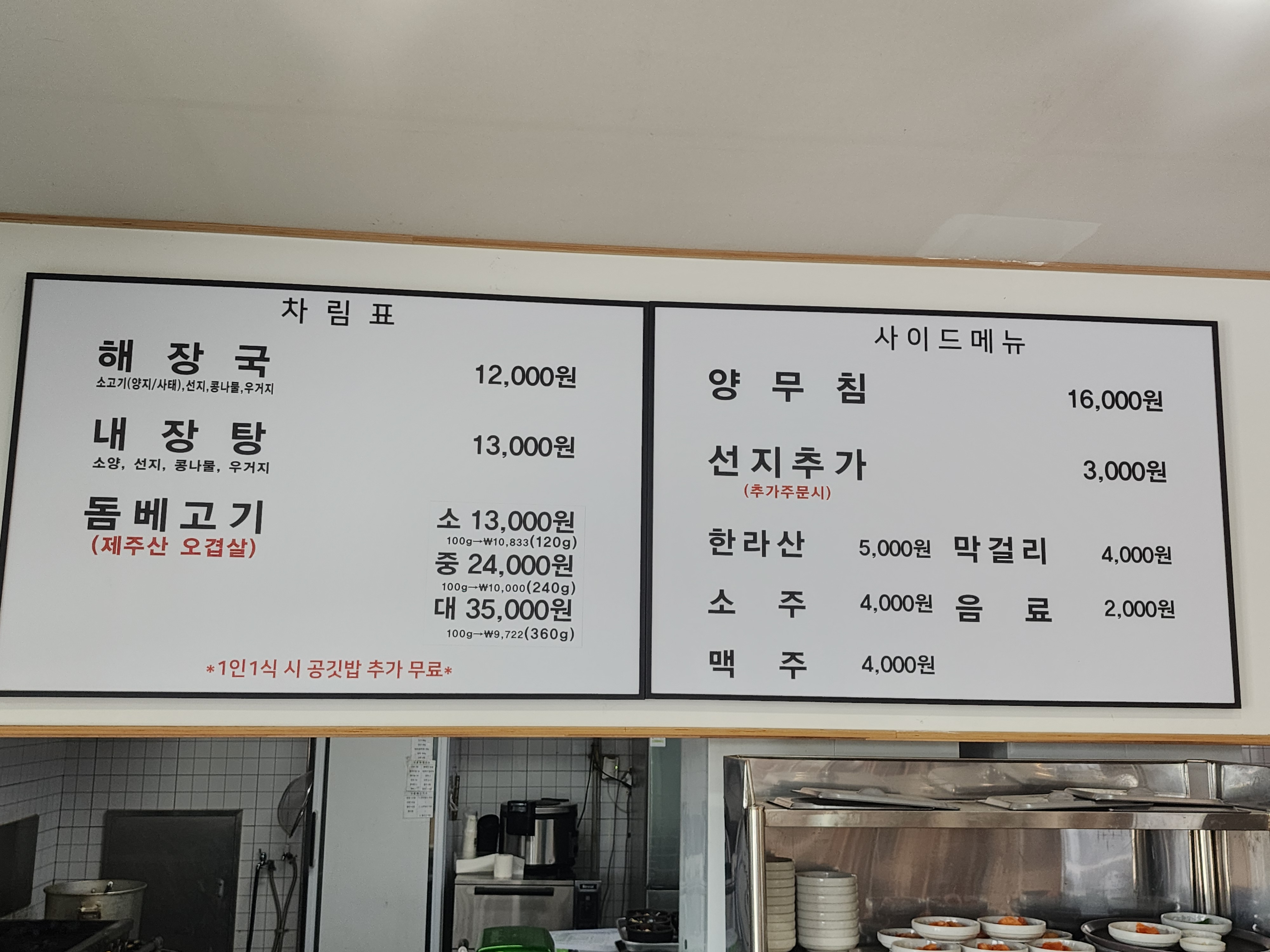 대표 메뉴인 해장국은 12,000원으로 저렴한 편은 아닙니다.