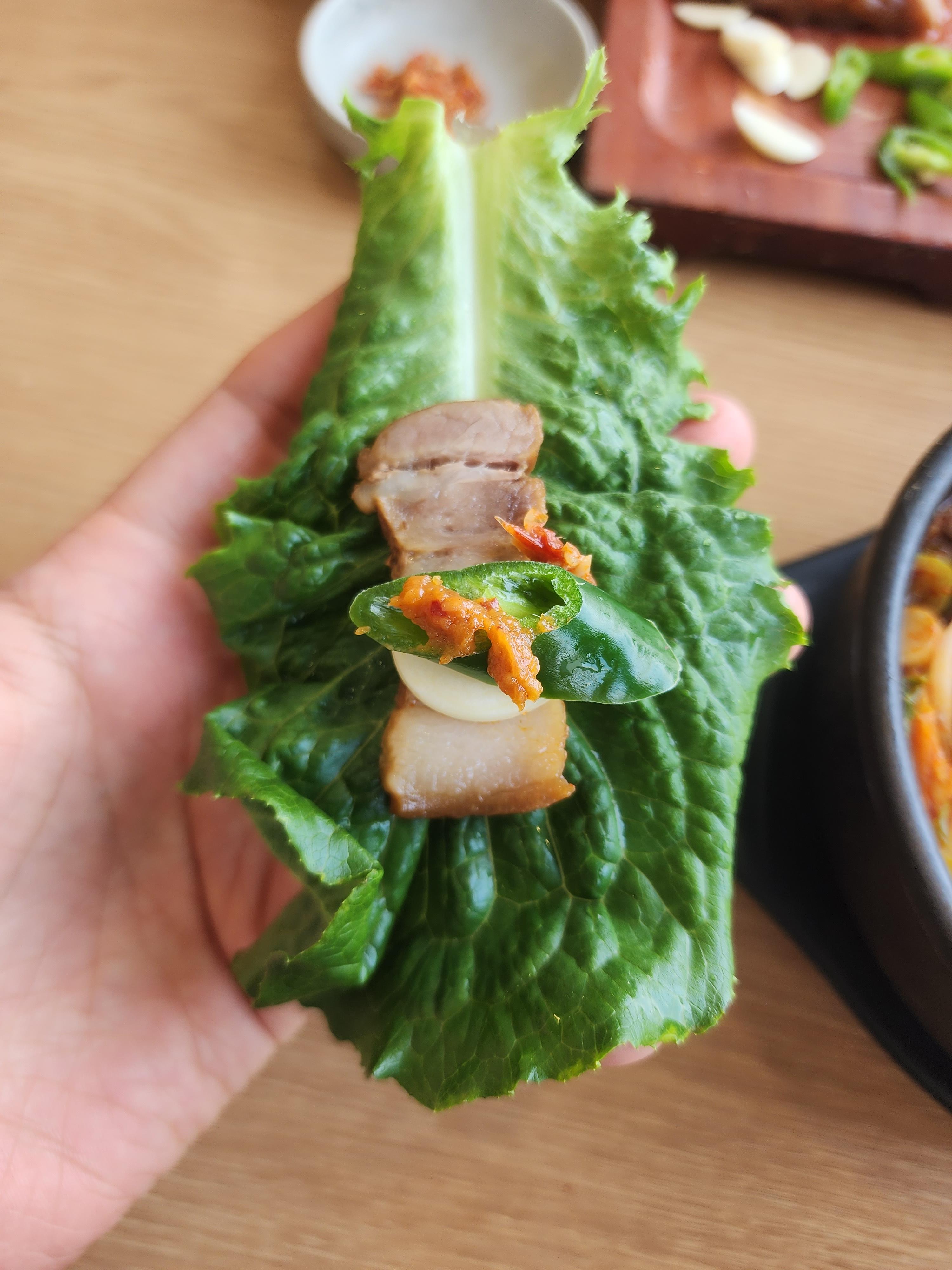 쌈으로 싸 먹으니까 더 맛있었어요~~