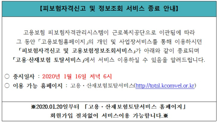 그런데 2020년 1월 16일부터 고용 산재보험포털 서비스로 이전되었어요.